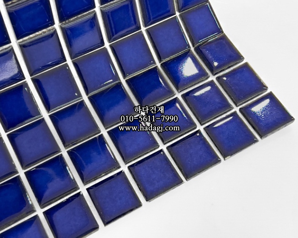 정사각 모자이크타일 25x25x5.5T 아틀란타 블루 유광 자기질타일 / 하다건재