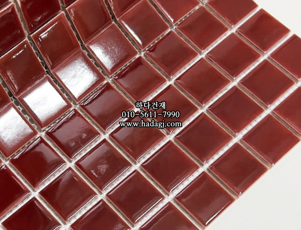 정사각 모자이크타일 25x25x5.5T 버건디 레드 유광 자기질타일 / 하다건재
