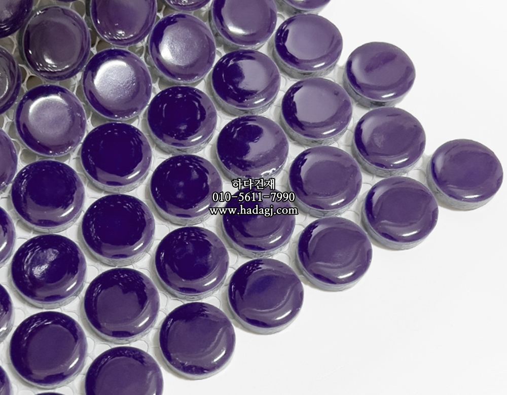 원형 모자이크타일 19x19x6T 코발트퍼플 유광 자기질타일 / 하다건재
