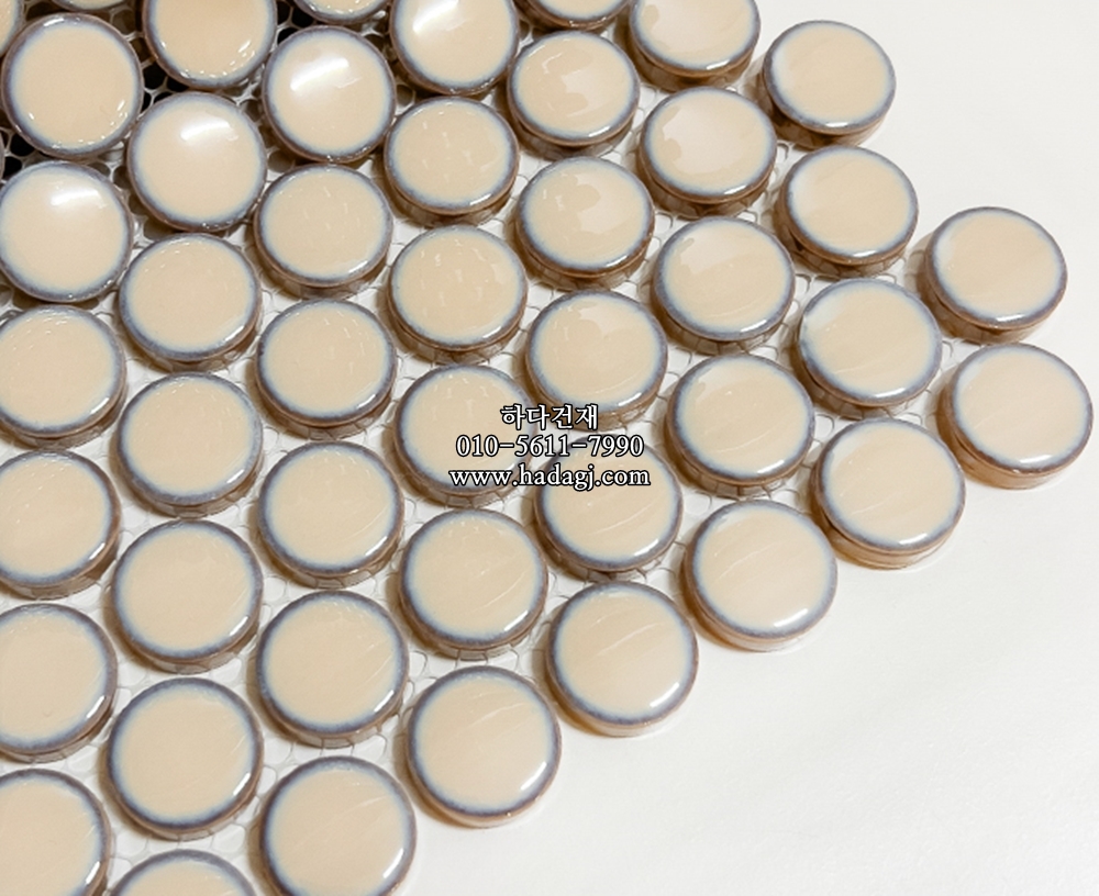 원형 모자이크타일 19x19x6T 크림 유광 자기질타일 / 하다건재