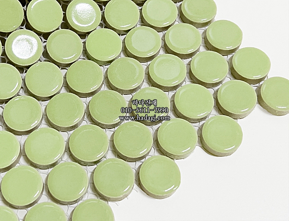 원형 모자이크타일 19x19x6T 라임 유광 자기질타일 / 하다건재
