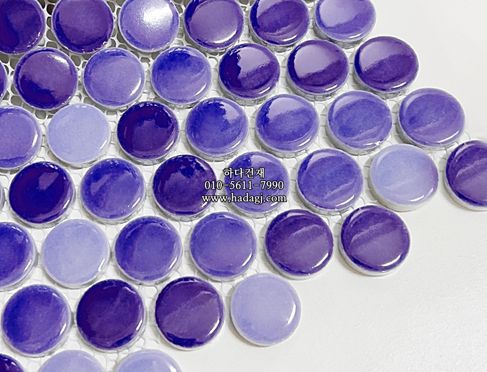원형 모자이크타일 19x19x6T 퍼플믹스 유광 자기질타일 / 하다건재