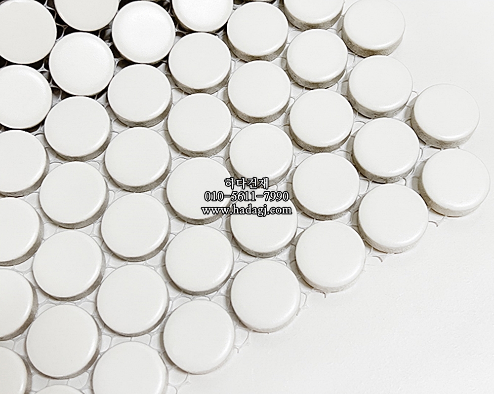 원형 모자이크타일 19x19x6T 화이트 무광 자기질타일 / 하다건재