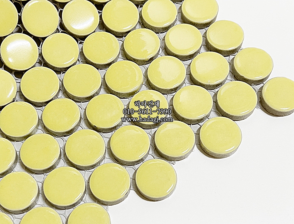원형 모자이크타일 19x19x6T 옐로우 유광 자기질타일 / 하다건재