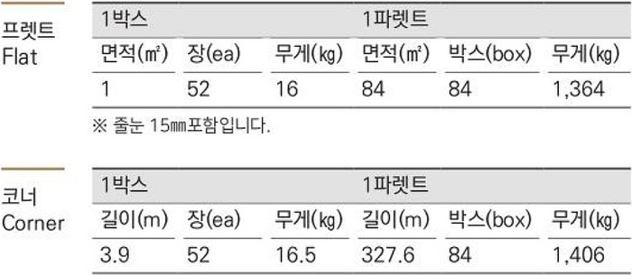 1박스: 52장/1㎡ (15mm줄눈기준)