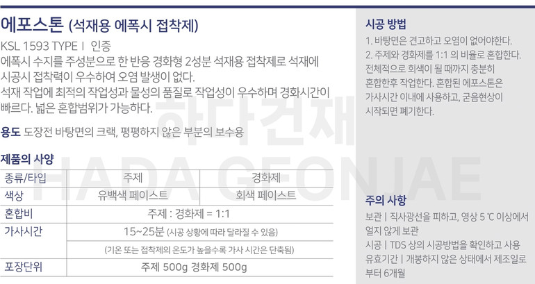 에포스톤 석재용 에폭시 접착제 / 하다건재 테라코