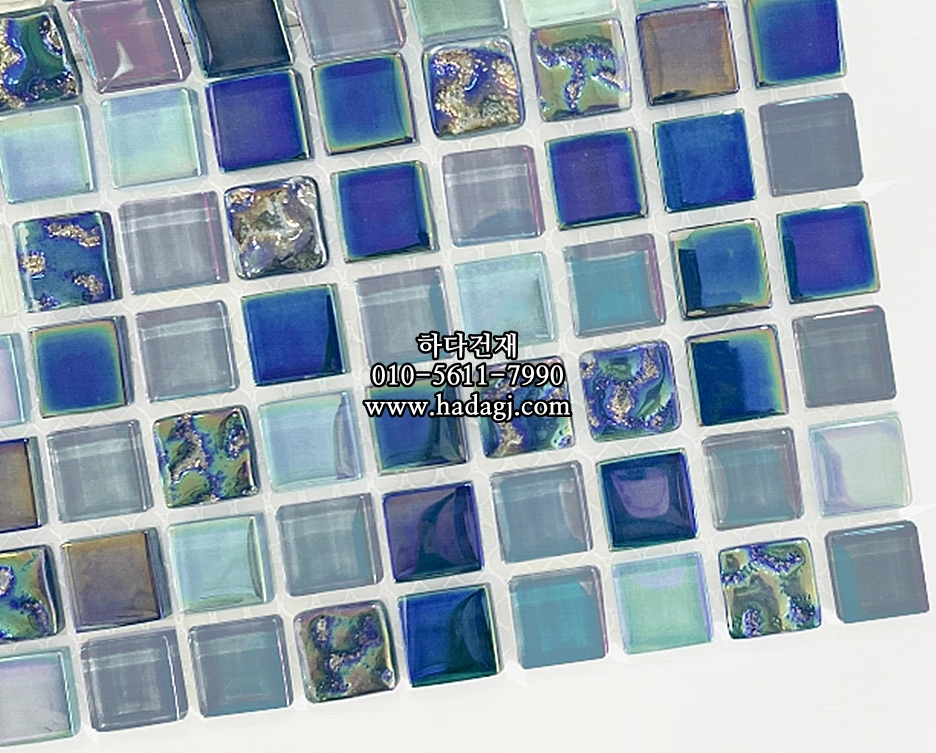 유리 모자이크타일 15x15x4T 블루믹스 유광 / 하다건재
