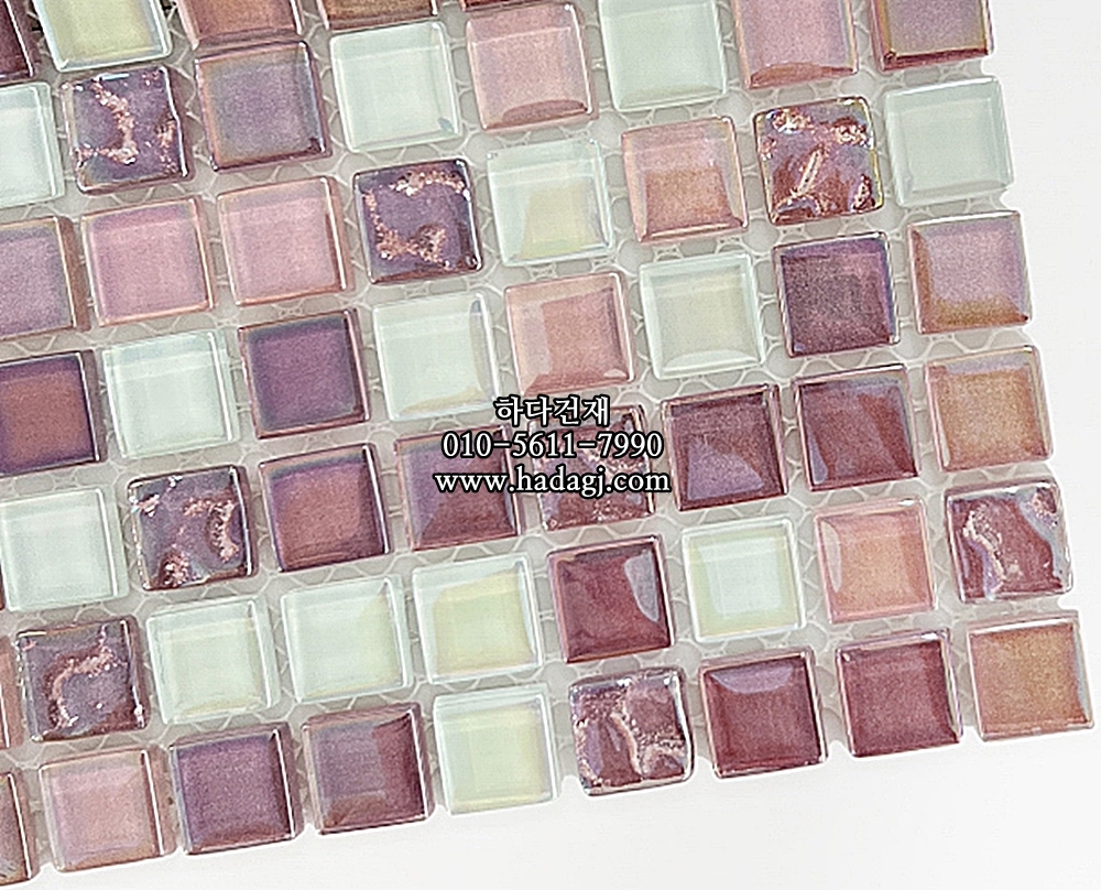 유리 모자이크타일 15x15x4T 핑크믹스 유광 / 하다건재