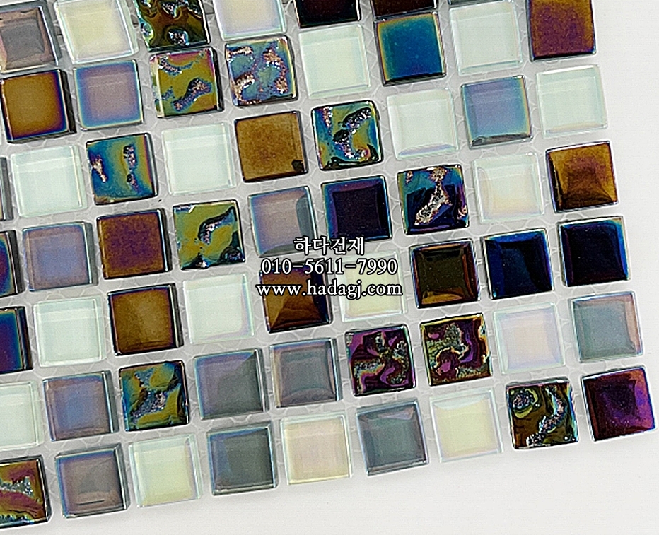 유리 모자이크타일 15x15x4T 네이비퍼플믹스 유광 / 하다건재