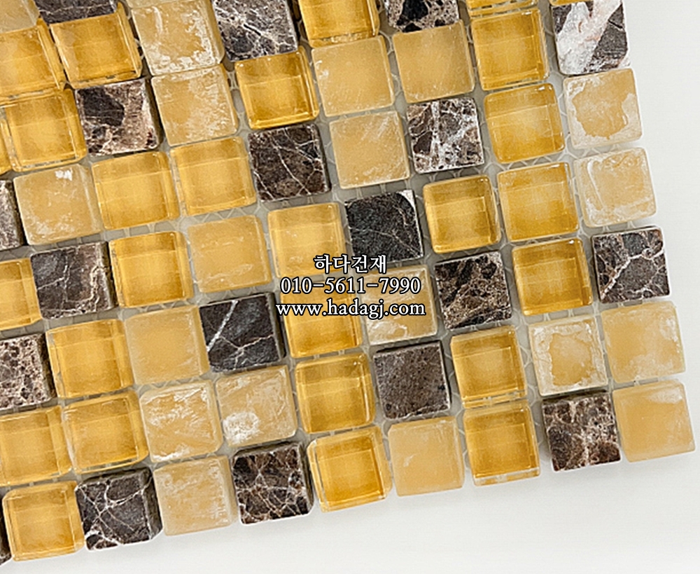 돌유리 모자이크타일 15x15x4T 옐로우믹스 무광유광 / 하다건재