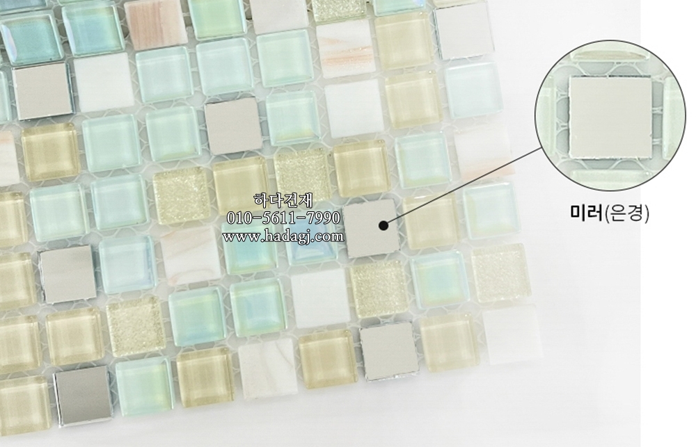 유리 모자이크타일 15x15x4T 아이보리믹스 유광 / 하다건재