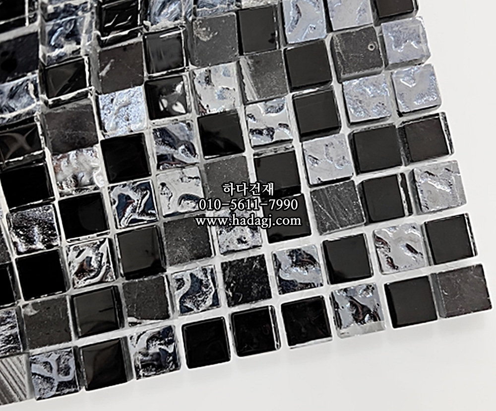돌유리 모자이크타일 15x15x4T 블랙믹스 유광 / 하다건재