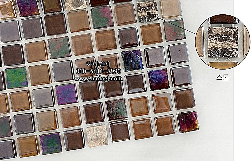 유리 모자이크타일 15x15x4T 퍼플브라운믹스 유광 / 하다건재