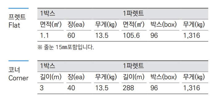 1박스: 60장/1.1㎡(15mm줄눈기준)