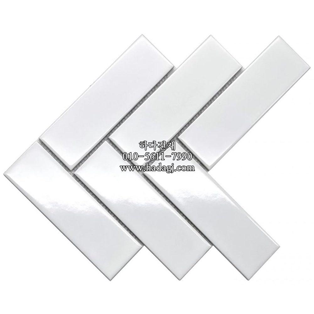 직각 모자이크타일 헤링본 45x145x5T 화이트 유광 / 하다건재