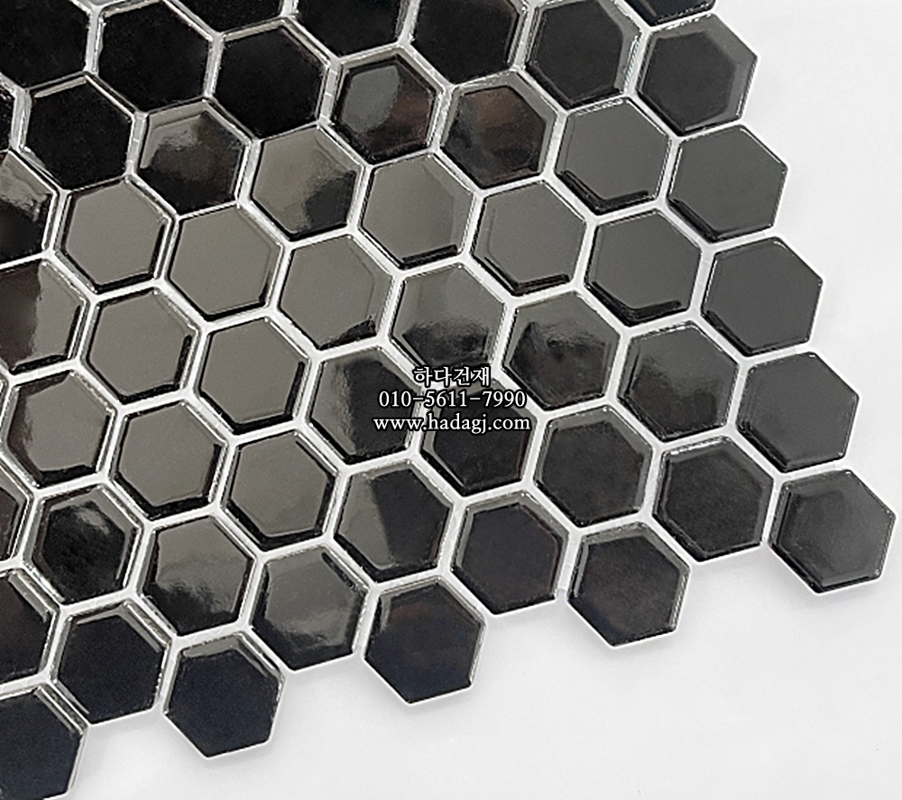 육각 모자이크타일 23x26x5T 블랙 유광 헥사곤 자기질타일 / 하다건재
