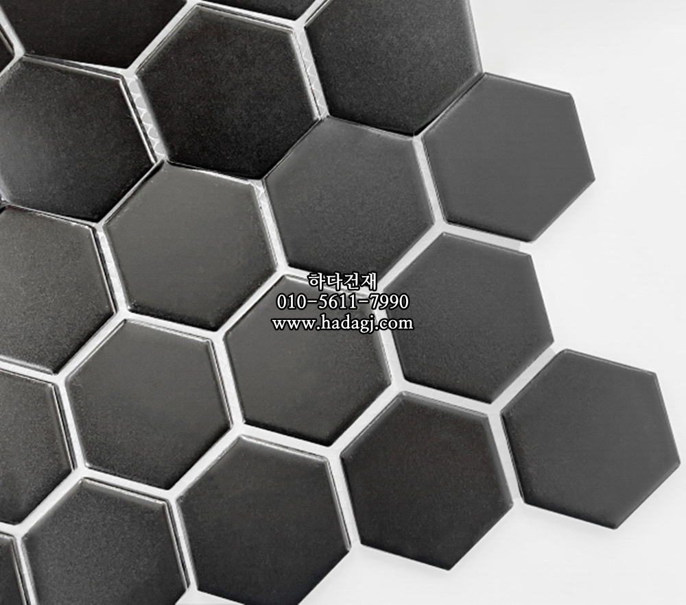 육각 모자이크타일 51x59x5T 블랙 무광 헥사곤 자기질타일 / 하다건재