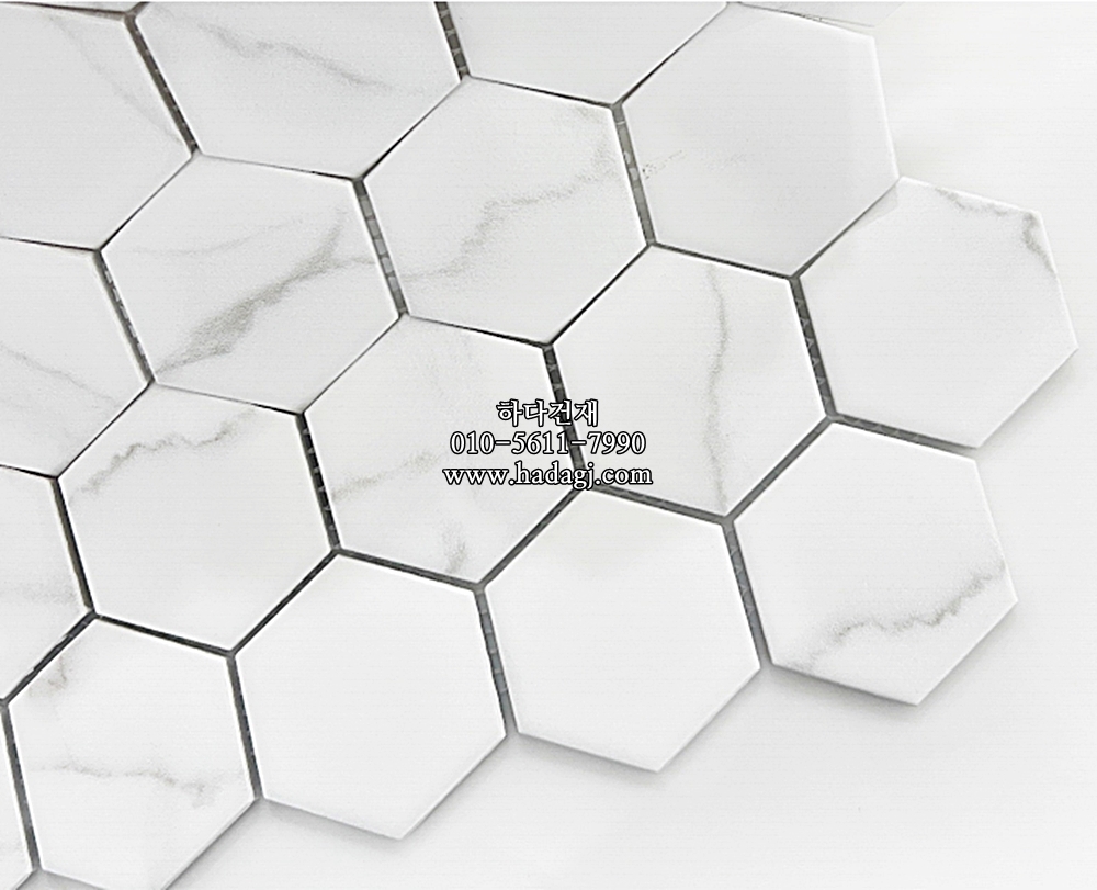 육각 모자이크타일 51x59x5T 카라라 화이트 무광 헥사곤 자기질타일 / 하다건재