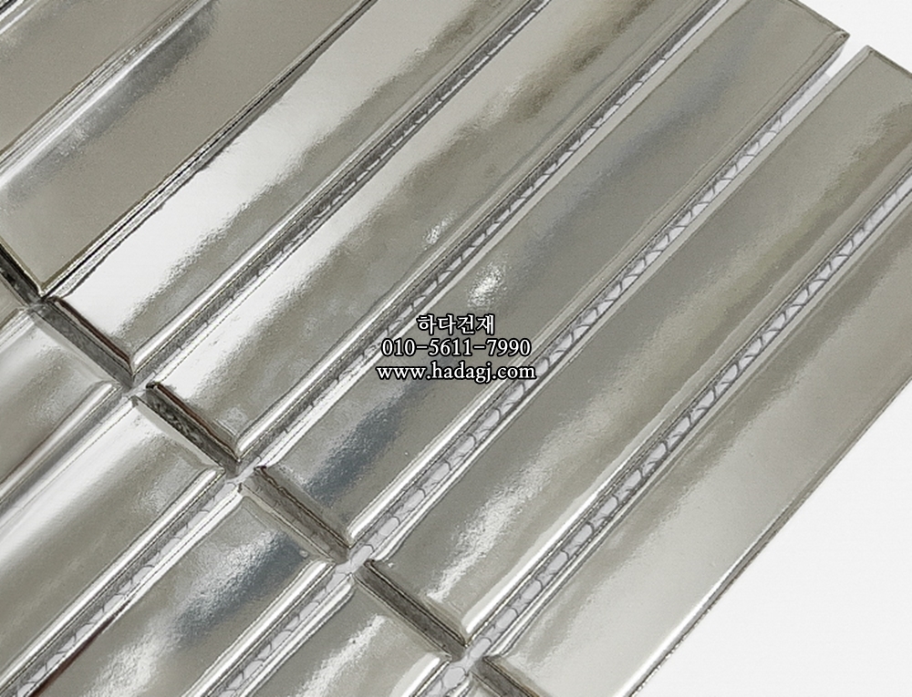 메탈 직사각 모자이크타일 22x145x7T 실버 유광 자기질타일 / 하다건재