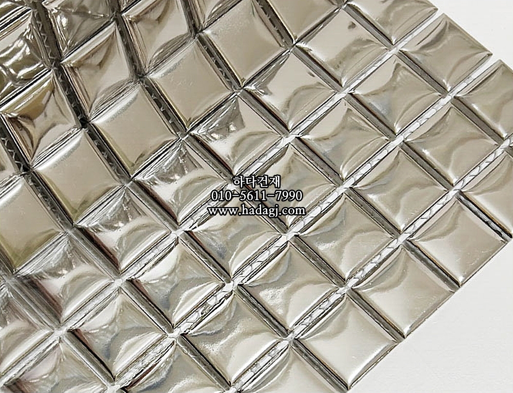 메탈 정각 모자이크타일 25x25x5.5T 실버엠보 유광 자기질타일 / 하다건재