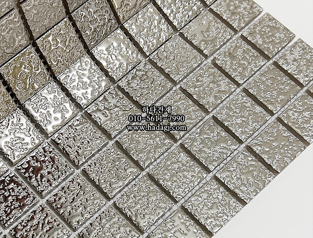 메탈 정각 모자이크타일 25x25x5.5T 실버락 유광 자기질타일 / 하다건재