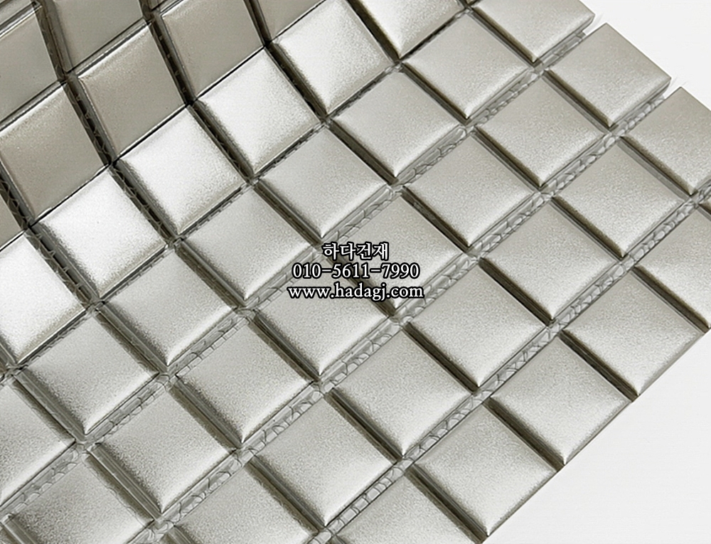 메탈 정각 모자이크타일 25x25x5.5T 실버 무광 자기질타일 / 하다건재