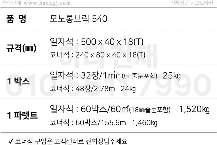 라일락 모노타일 슬림 500x40x18T 레드, 허니베이지, 비취화이트, 블랙 / 하다건재 와이드벽돌타일