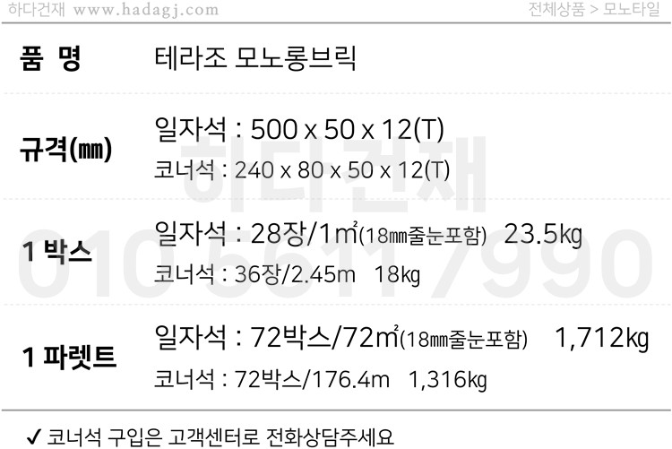 1박스: 28장/1㎡ (18mm줄눈기준)