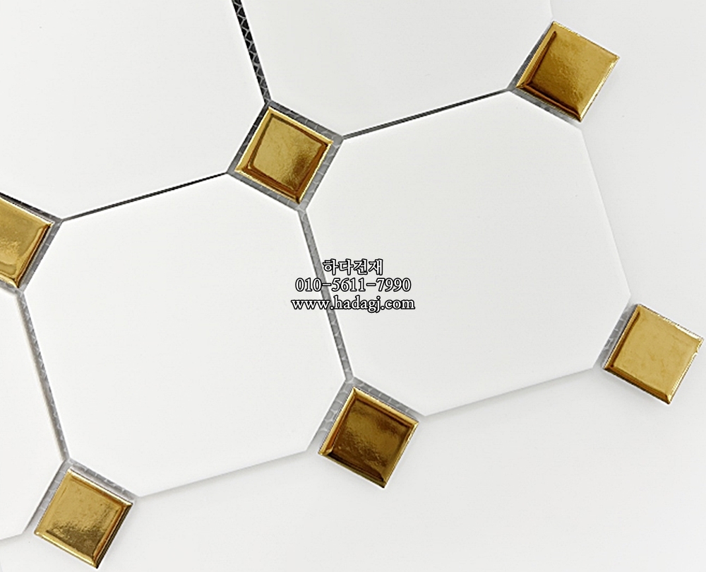 팔각 모자이크타일 95x95x6T 화이트 골드 유광 자기질타일 / 하다건재
