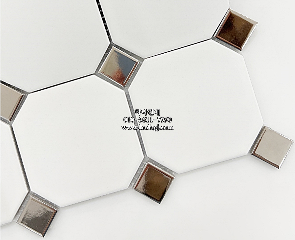 팔각 모자이크타일 95x95x6T 화이트 실버 유광 자기질타일 / 하다건재