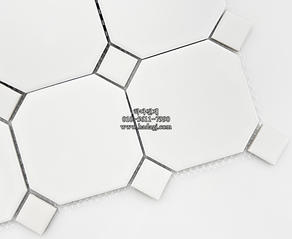 팔각 모자이크타일 95x95x6T 올화이트 유광 자기질타일 / 하다건재