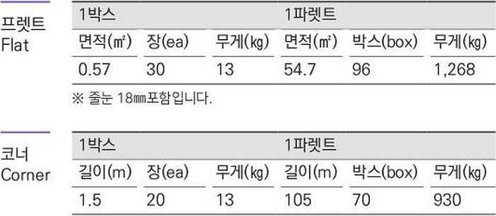 1박스: 30장/0.57㎡ (18mm줄눈기준)