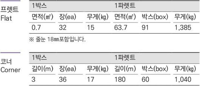 1박스: 32장/0.7㎡ (18mm줄눈기준)