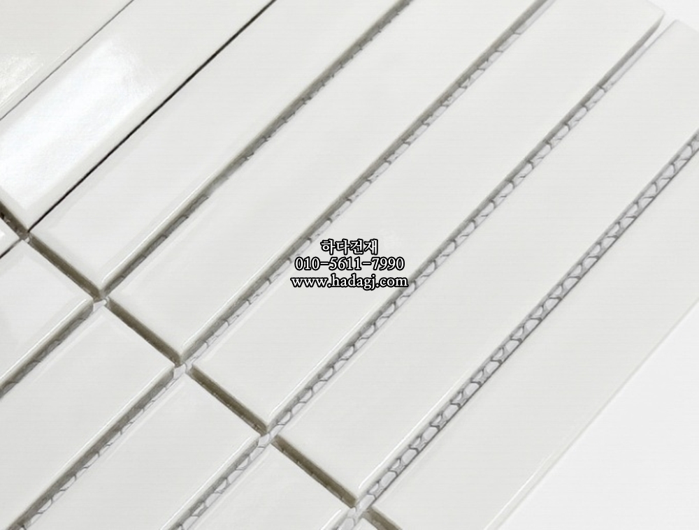 직사각 모자이크타일 22x145x7T 화이트 유광 자기질타일 / 하다건재