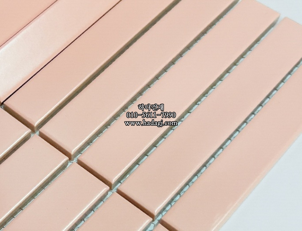직사각 모자이크타일 22x145x7T 핑크 무광 자기질타일 / 하다건재