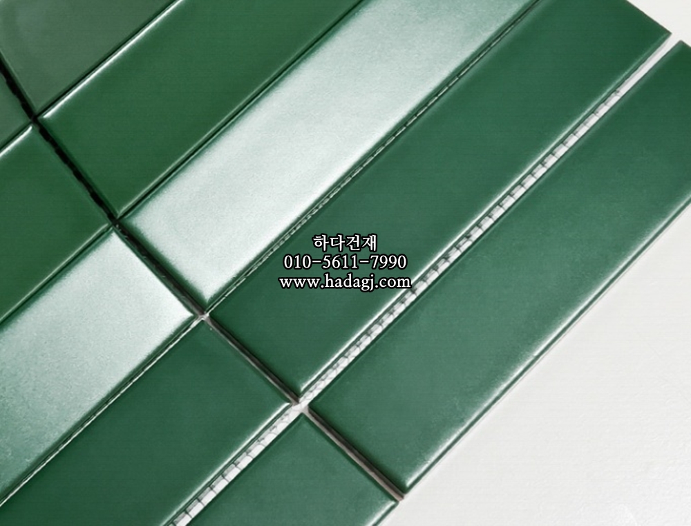 직사각 모자이크타일 32x145x7T 그린 무광 자기질타일 / 하다건재