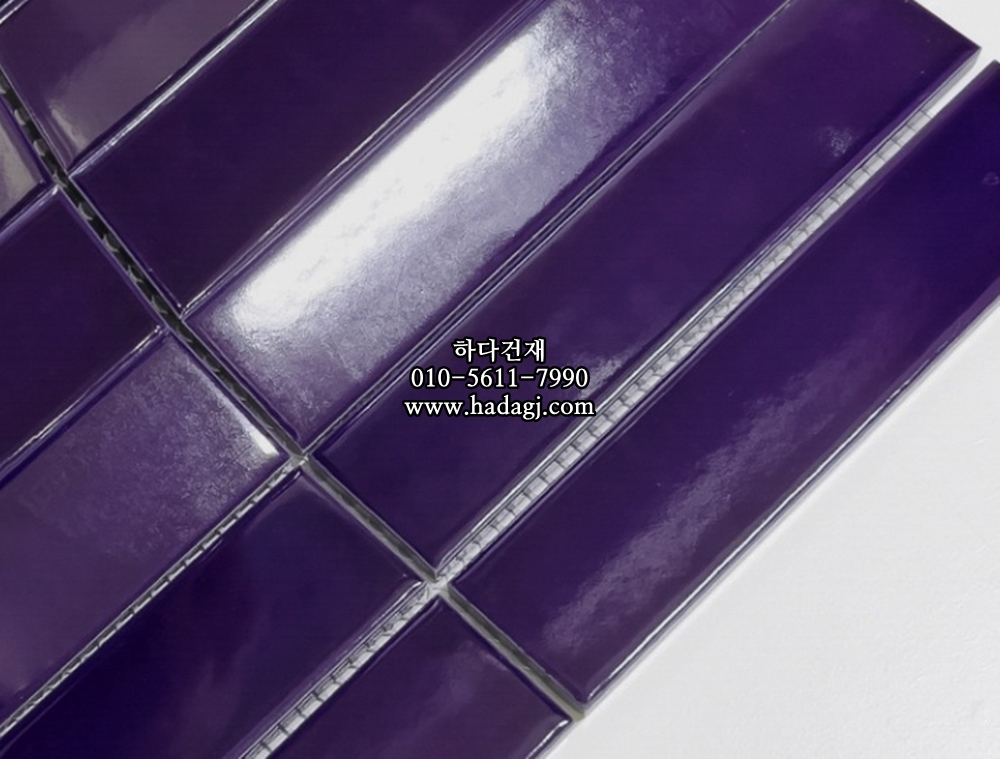 직사각 모자이크타일 32x145x7T 퍼플 유광 자기질타일 / 하다건재