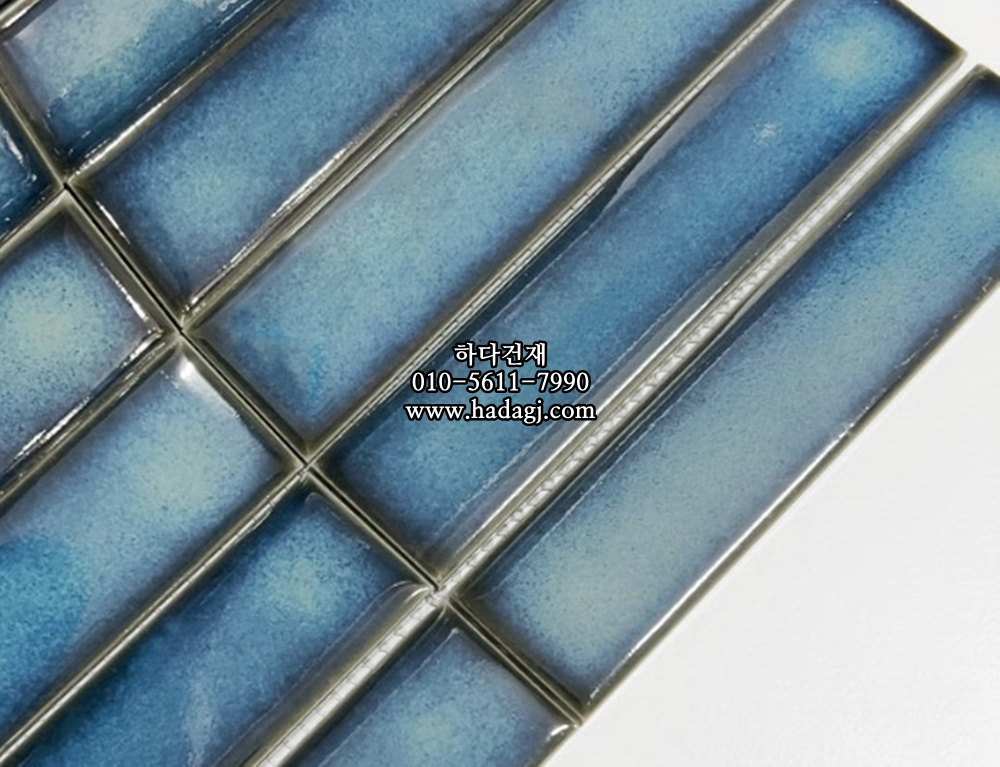직사각 모자이크타일 32x145x7T 아쿠아블루 유광 자기질타일 / 하다건재