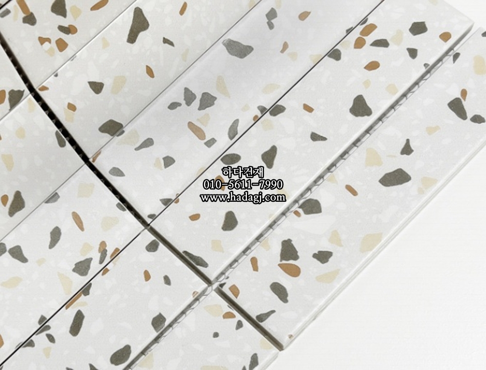직사각 모자이크타일 32x145x7T 테라조 화이트 (오렌지) 무광 자기질타일 / 하다건재