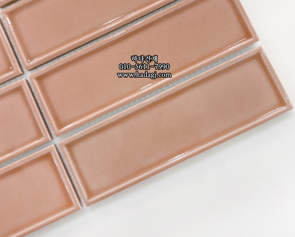 직사각 모자이크타일 45x145x7T 코랄핑크 유광 자기질타일 BO145 / 하다건재