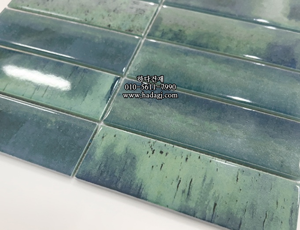 직사각 모자이크타일 45x145x7T 오션 블루 유광 자기질타일 OCEAN / 하다건재