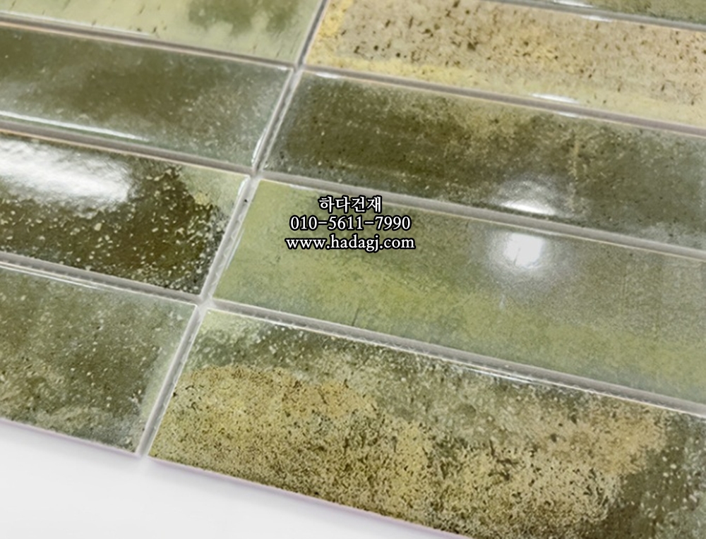 직사각 모자이크타일 45x145x7T 스웜프 올리브그린 유광 자기질타일 SWAMP / 하다건재