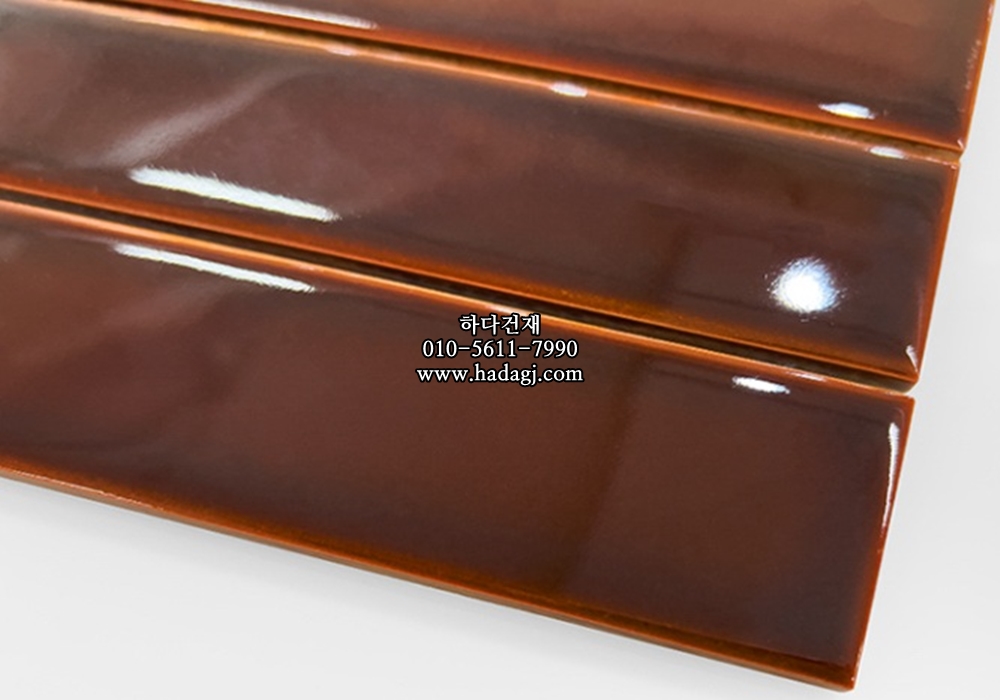직사각 모자이크타일 45x195x7T 레드와인 유광 자기질타일 / 하다건재