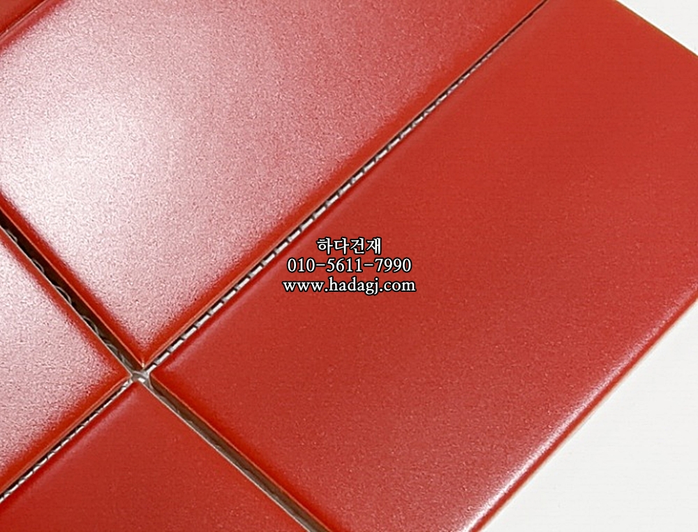 직사각 모자이크타일 68x136x7T 레드 무광 자기질타일 / 하다건재
