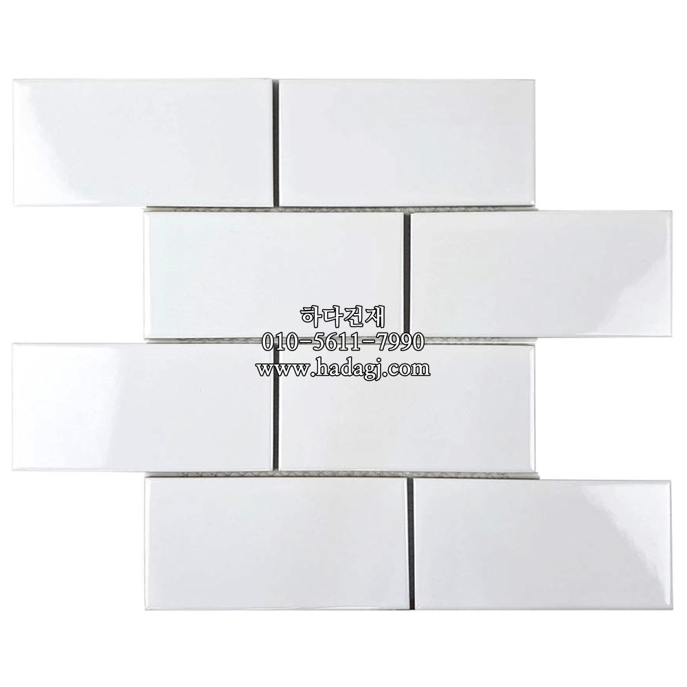 직각 모자이크타일 격자 68x136x5T 화이트 유광 / 하다건재