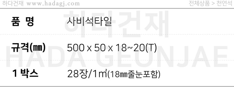 사비석타일 천연석타일 500x50x18~20T 짙은면, 밝은면 / 하다건재