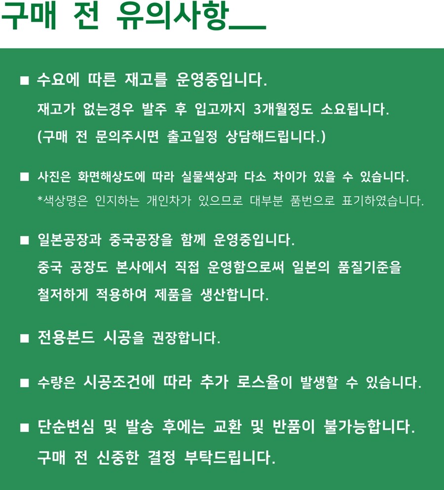 - 1박스: 64장 / 0.72㎡ / 21kg
