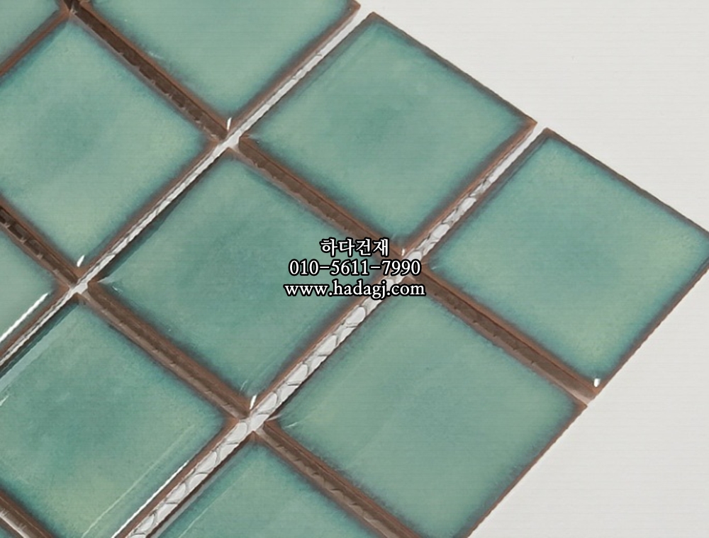 정사각 모자이크타일 48x48x6T 오팔 그린 유광 자기질타일 / 하다건재