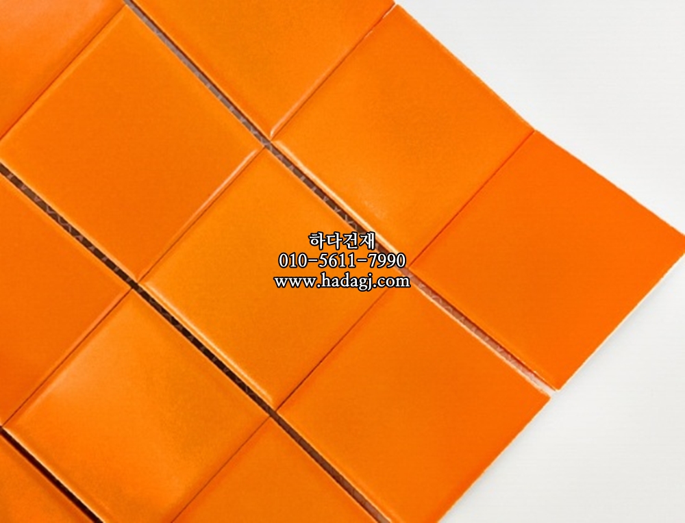 정사각 모자이크타일 48x48x6T 오렌지 무광 자기질타일 / 하다건재