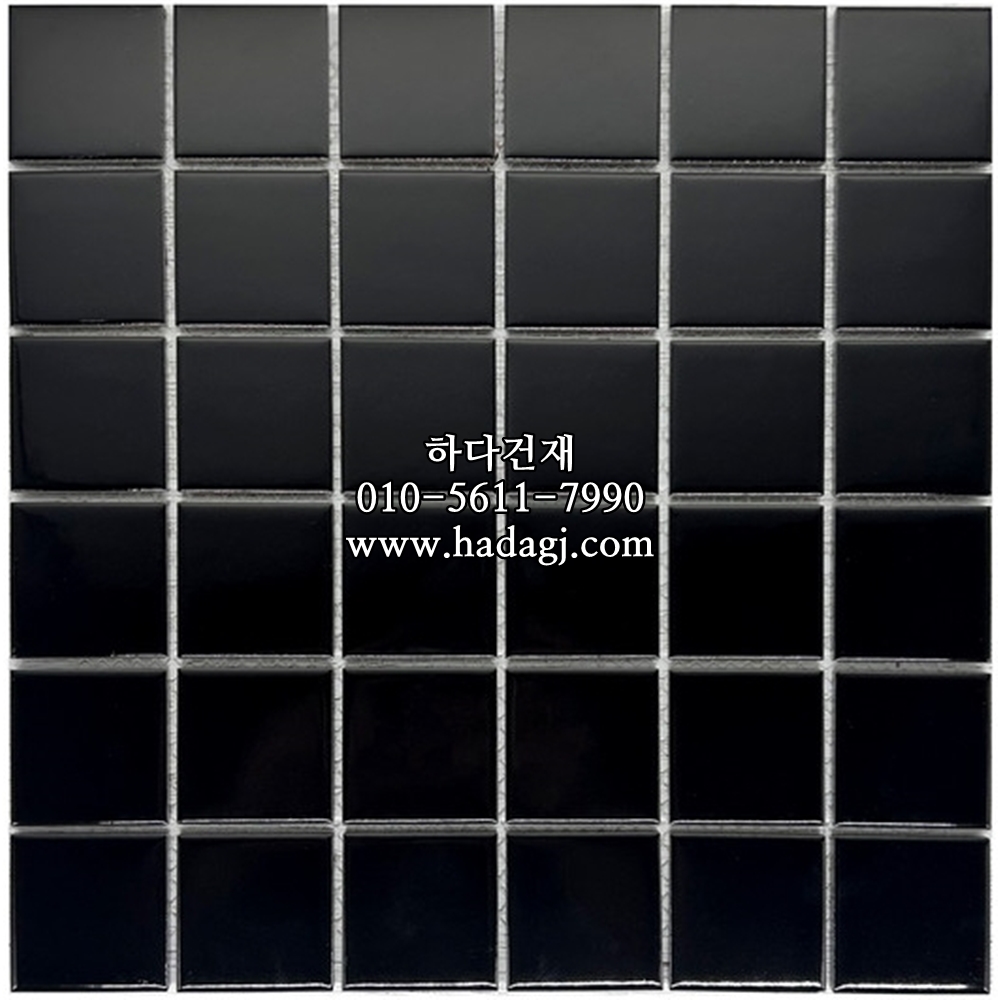 정각 모자이크타일 48x48x6T 블랙 유광 / 하다건재